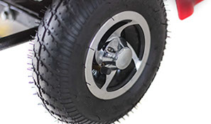 The Daymak Boomerbuggy IV also features LED headlights and turn signals. These bright lights are very low in battery power usage, and allow you to indicate which direction you are turning. Make sure you are visible to all on comers.