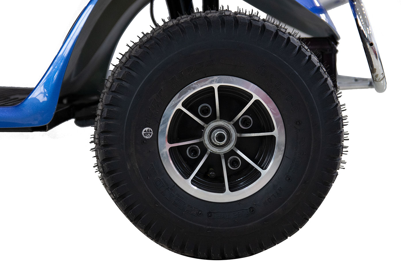 The Boomerbuggy V gives you a little bit of extra storage room with its mesh basket. Take this mobility scooter to the grocery store to pick up whatever you need or use it as a storage space for your bag or purse.