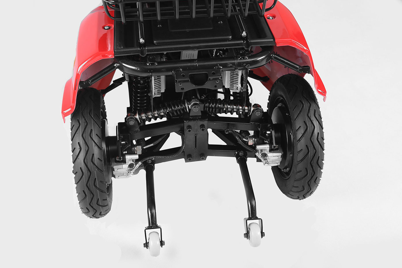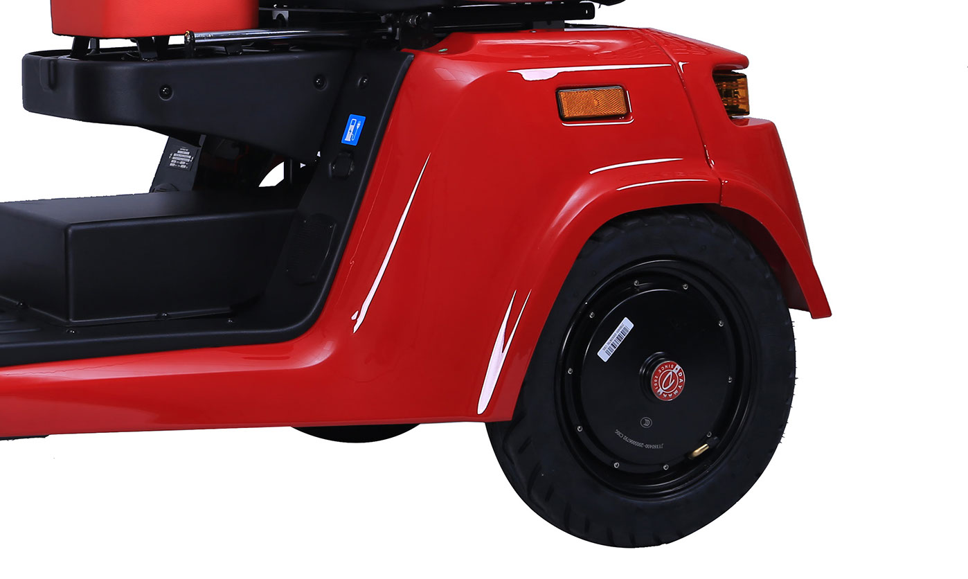 An all new feature is the dual rear suspension! Not only does this scooter make a smoother ride when going over bumps, but slightly adjusts the height of the wheels so your level even when the floor is not!